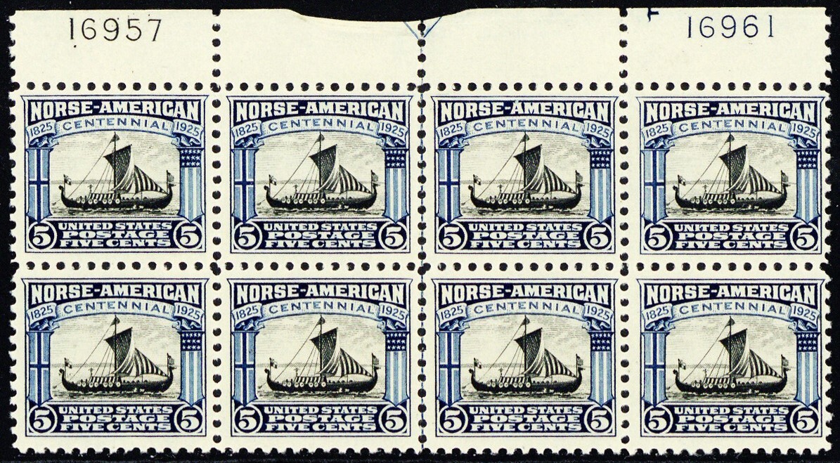 621, Mint VF LH 5¢ Plate Block of Eight CV $450.00 -- Stuart Katz