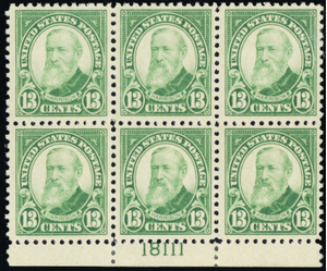 622, Mint VF NH 13¢ Plate Block of Six - Stuart Katz