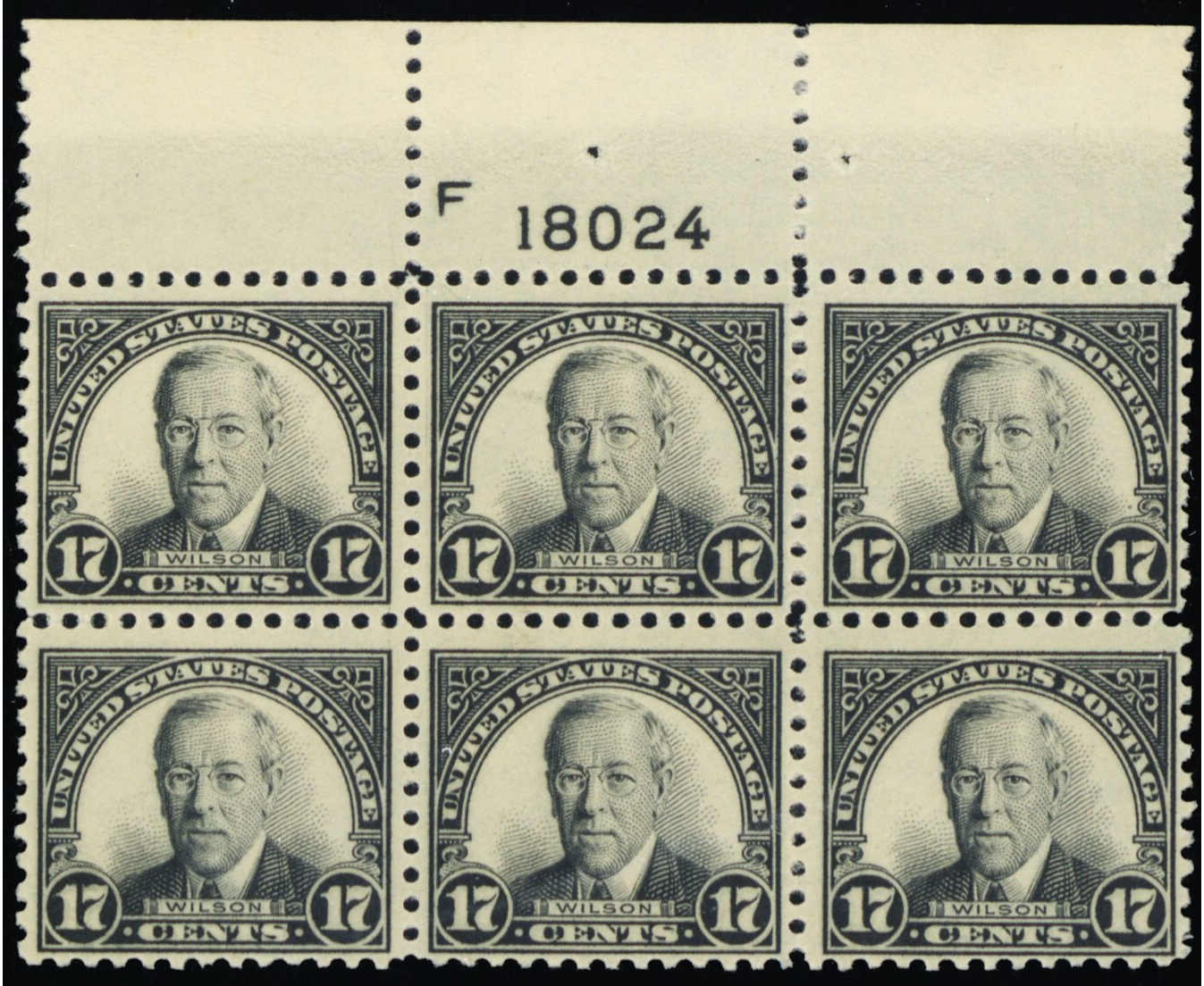 623, Mint NH 17¢ Top Plate Block SCV $325 - Stuart Katz