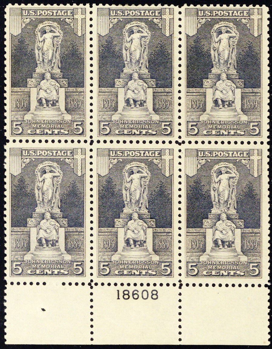 628, Mint VF NH 5¢ Plate Block of Six - Light Shade * Stuart Katz