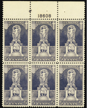 628, Mint XF NH 5¢ Top Plate Block - Stuart Katz