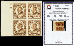 Due to the high cost of obtaining certificates we will only refund the cost of the stamp and not the cost of the certificate for stamps that sell for less than $250 that come back with a negative certificate. Stamps that sell for above $250 will receive a full refund for both the price of the stamp and cost of the certificate if it should come back not as described. For U.S. stamps only certificates from either APS, PSE or from the Philatelic Foundation are accepted, however "graded" certificates or "encased" items are not accepted.