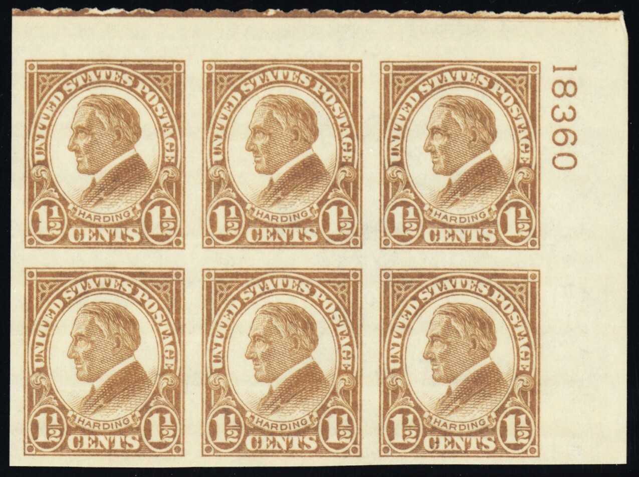 631, Mint XF NH 1 1/2¢ Plate Block of Six - Stuart Katz