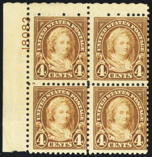 636, Mint NH 4¢ Plate Block of Four SCV $92.50 - Stuart Katz
