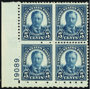 637, Mint VF NH 5¢ Plate Block -- Stuart Katz