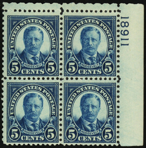637, Mint VF NH 5¢ Plate Block * Stuart Katz Description:
