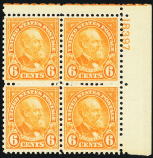 638, Mint VF NH 6¢ Plate Block -- Stuart Katz