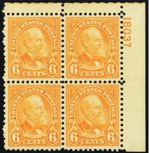 638, Mint VF NH 6¢ Plate Block *--* Stuart Katz
