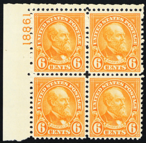 638, Mint VF NH 6¢ Plate Block *-* Stuart Katz