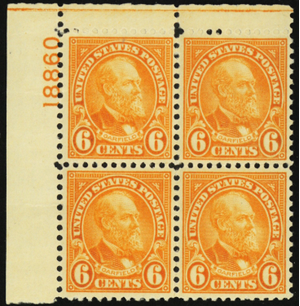 638, Mint VF NH 6¢ Plate Block * Stuart Katz Description: