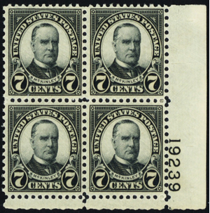 639, Mint VF NH 7¢ Plate Block *** Stuart Katz
