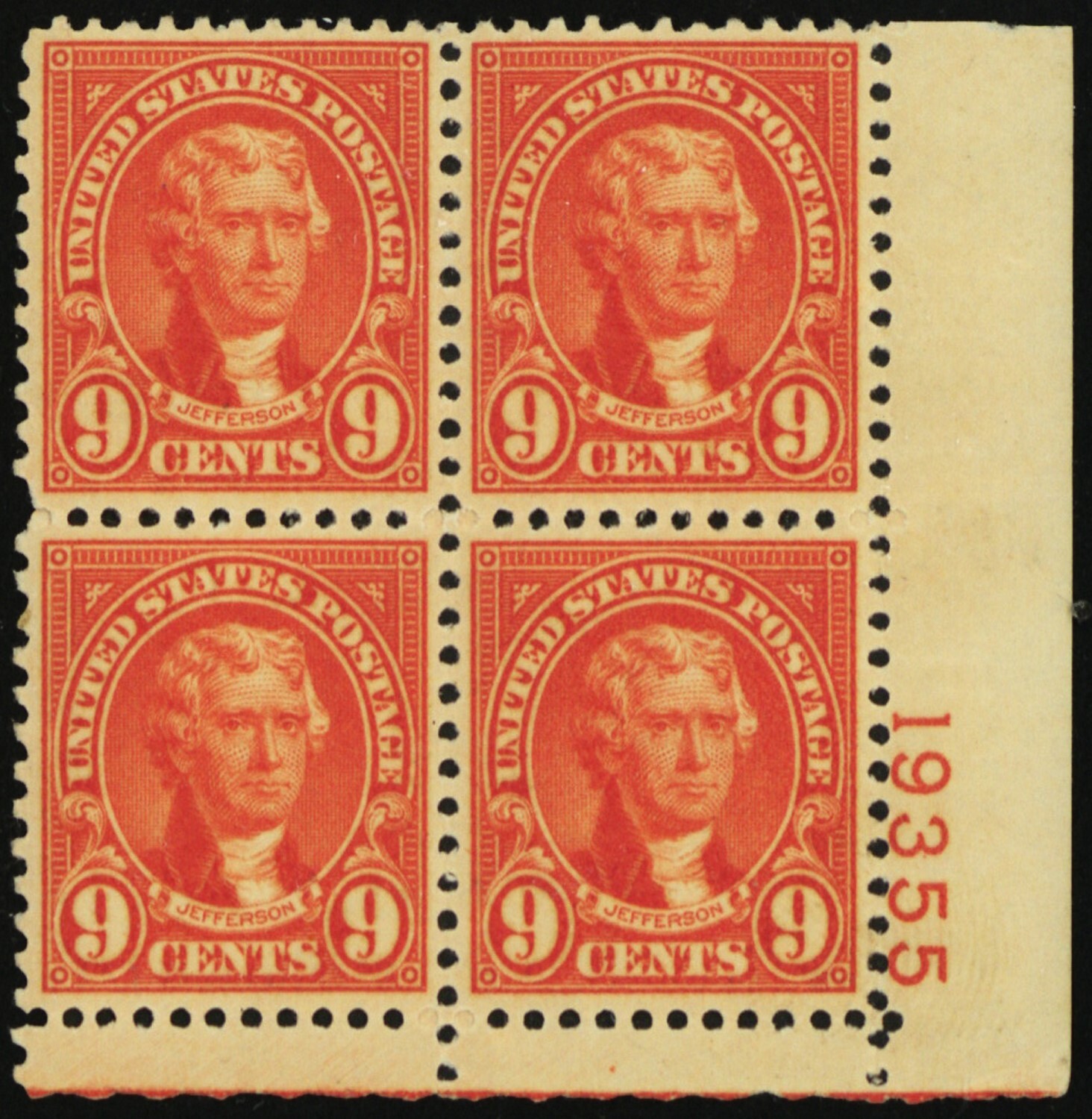 641, Mint VF NH 9¢ Plate Block * Stuart Katz Description: