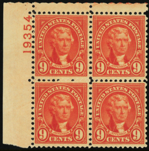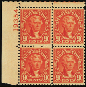 641, Mint VF NH 9¢ Plate Block ** Stuart Katz Description: