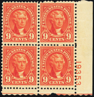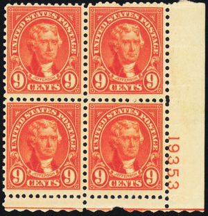 641, Mint VF NH 9¢ Plate Block --- Stuart Katz