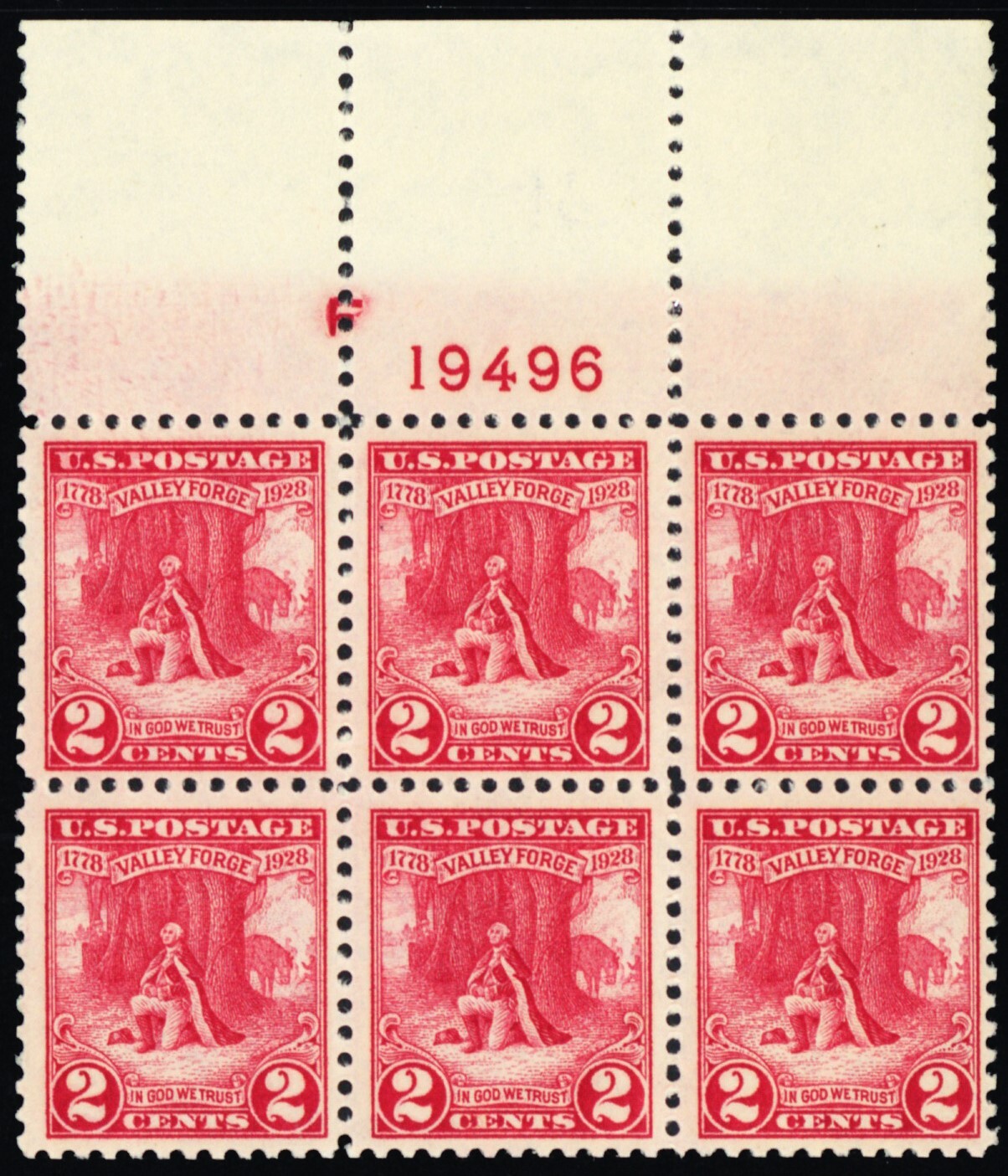 645, Mint FVF NH 2¢ Top Plate Block -- Stuart Katz