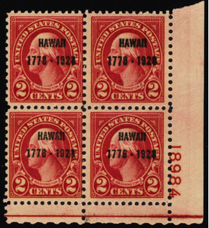 647, Mint NH 2¢ Hawaii Plate Block CV $185 * Stuart Katz