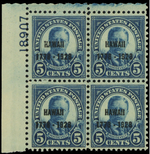 648, Mint VF H 5¢ Plate Block of Four Stamps CV $200.00 - Stuart Katz