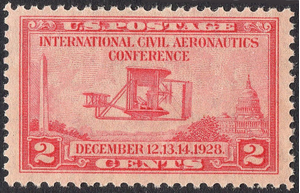 XF MNH OG Scott #649 2-cent Aeronautics Conference Issue of 1928 commemorative. Very fresh color, good Margins and nice shade. No gum problems.