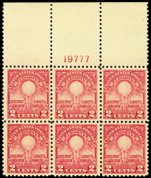654, Mint VF NH 2¢ Wide Top Plate Block of Six Stamps - Stuart Katz
