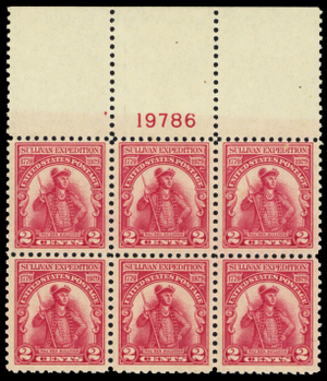657, Mint F/VF NH 2¢ Top Plate Block of Six Stamps - Stuart Katz