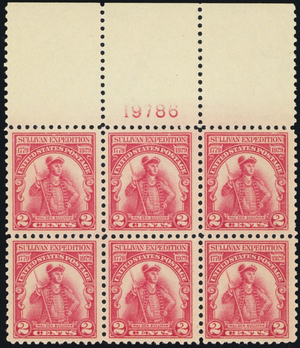 657, Mint NH XF Top Plate Block of Six Stamps -- Stuart Katz