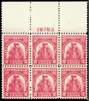657, Mint VF NH 2¢ Top Plate Block of Six Stamps -- Stuart Katz