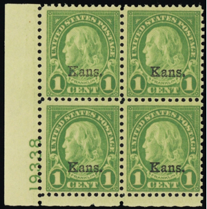 658, Mint FVF NH 1¢ Plate Block of Four - Stuart Katz