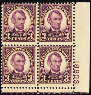 661, Mint NH 3¢ Kans Plate Block of Four SCV $325.00 * Stuart Katz