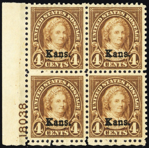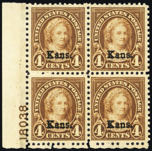 662, Mint VF NH 4¢ Kans Plate Block of Four SCV $300.00 * Stuart Katz
