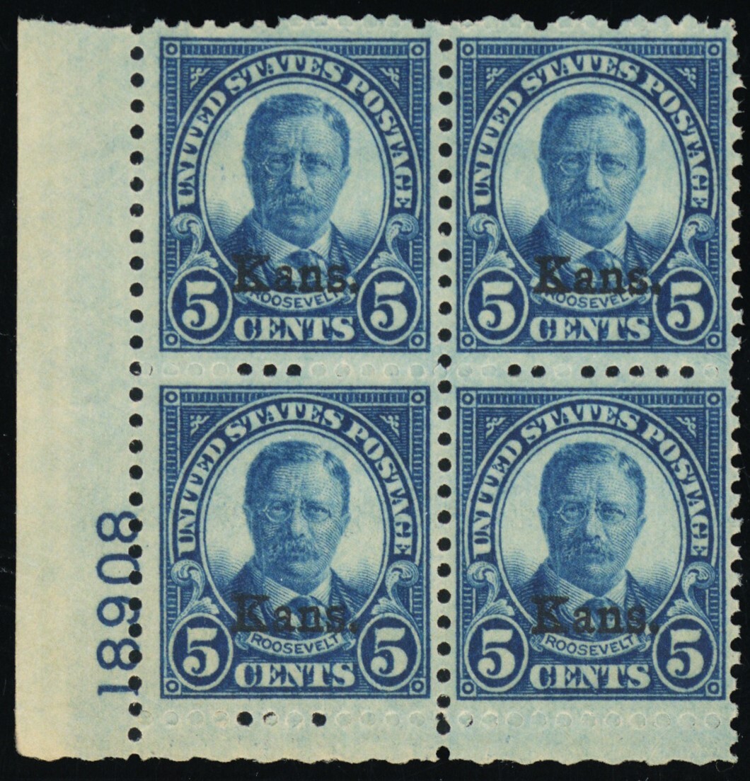 663, Mint VF NH 5¢ Kansas GEM Plate Block * Stuart Katz