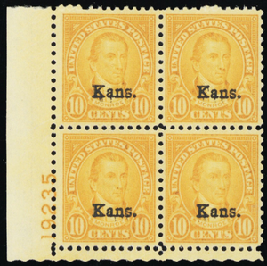 668, Mint VF/XF NH 10¢ Kansas GEM Plate Block * Stuart Katz