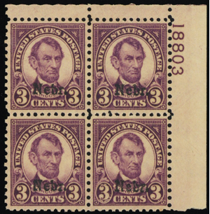 672, Mint VF XLH 3¢ Plate Block of Four - Stuart Katz