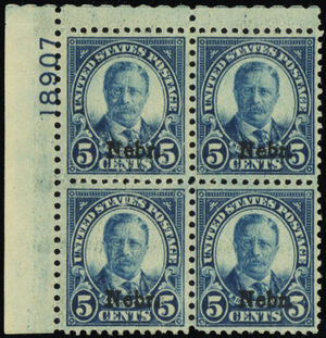 674, Mint VF+ LH 5¢ Plate Block of Four - Stuart Katz