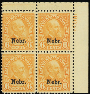 675, Mint NH 6¢ Plate Block of Four CV $750 - Stuart Katz