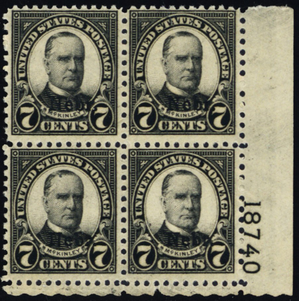 676, Mint NH 7¢ Nebr Plate Block of Four SCV $500.00 * Stuart Katz