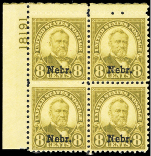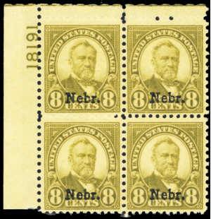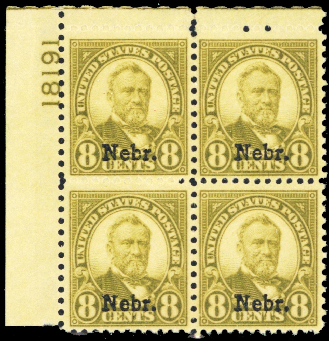 677, Mint NH VF 8¢ Nebr Plate Block of Four CV $550.00 * Stuart Katz