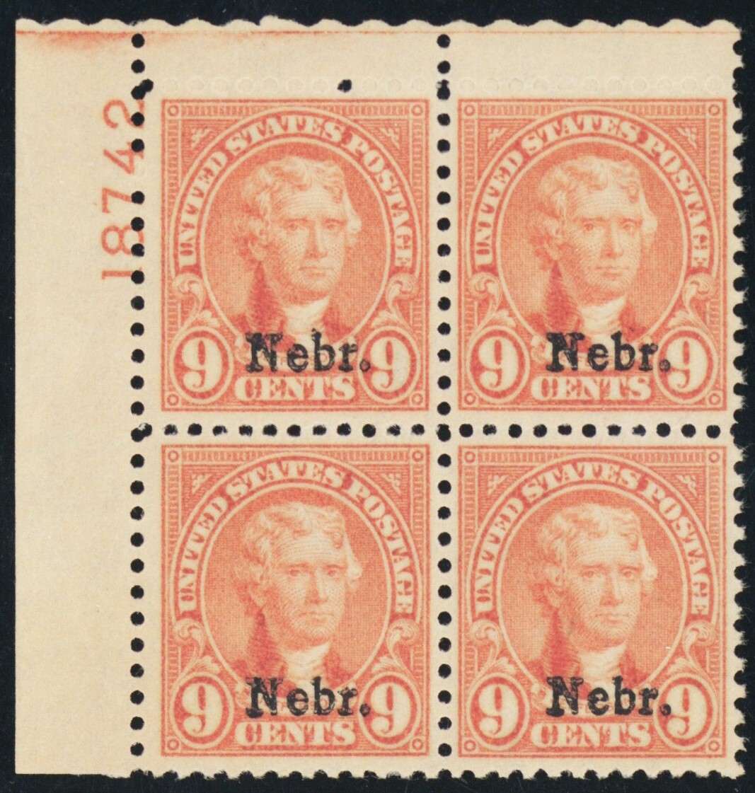 678, Mint VF/XF NH 9¢ Nebraska GEM Plate Block * Stuart Katz