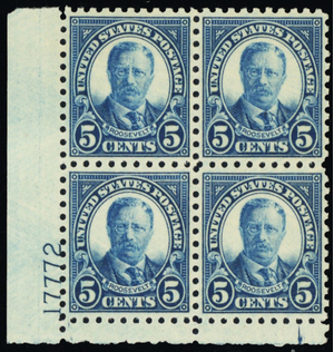 686, Mint XF VLH 5¢ Plate Block of Four - Stuart Katz