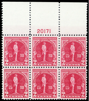 688, Mint VF NH 2¢ Top Plate Block of Six Stamps - Stuart Katz