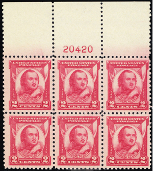 690, Mint NH 2¢ Top Plate Block of Six SCV $15.00 - Stuart Katz