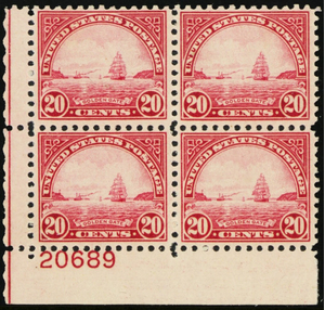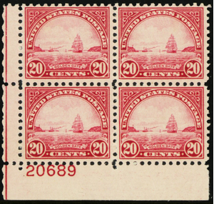 698, Mint FVF 20¢ Plate Block of Four Stamps - Stuart Katz