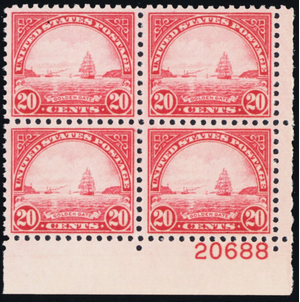 698, Mint NH VF 20¢ Plate Block of Four CV $60.00 - Stuart Katz
