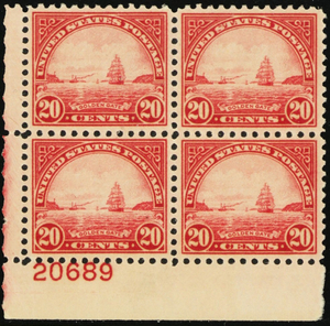 698, Mint XF 20¢ Plate Block of Four Stamps - Stuart Katz