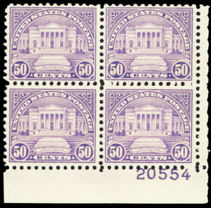 701, Mint NH VF 50¢ Plate Block of Four CV $230. - Stuart Katz
