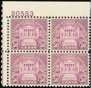 701, Mint XF VLH (2 NH) 50¢ Plate Block of Four Stamps - Stuart Katz