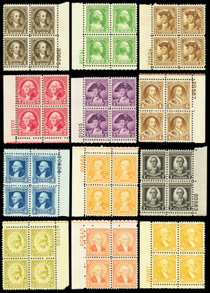 704-15, F-VF NH Set of 12 Plate Blocks Cat $393.00 ** Stuart Katz