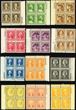 704-15, Mint VF NH Choice Set of Plate Blocks of Four - Stuart Katz