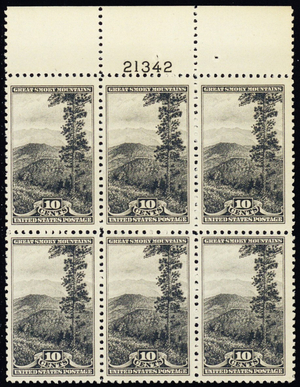 749, Mint VF NH 10¢ Top Plate Block of Six ** Stuart Katz