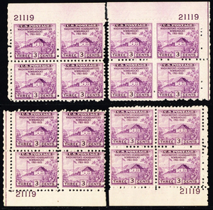 752, Unused (NGAI) 3¢ Matched Set of Plate Blocks SCV $110 * Stuart Katz