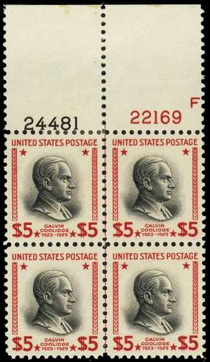 834, Mint LH $5 24481 22169 Plate Block Durland $600 - Stuart Katz
